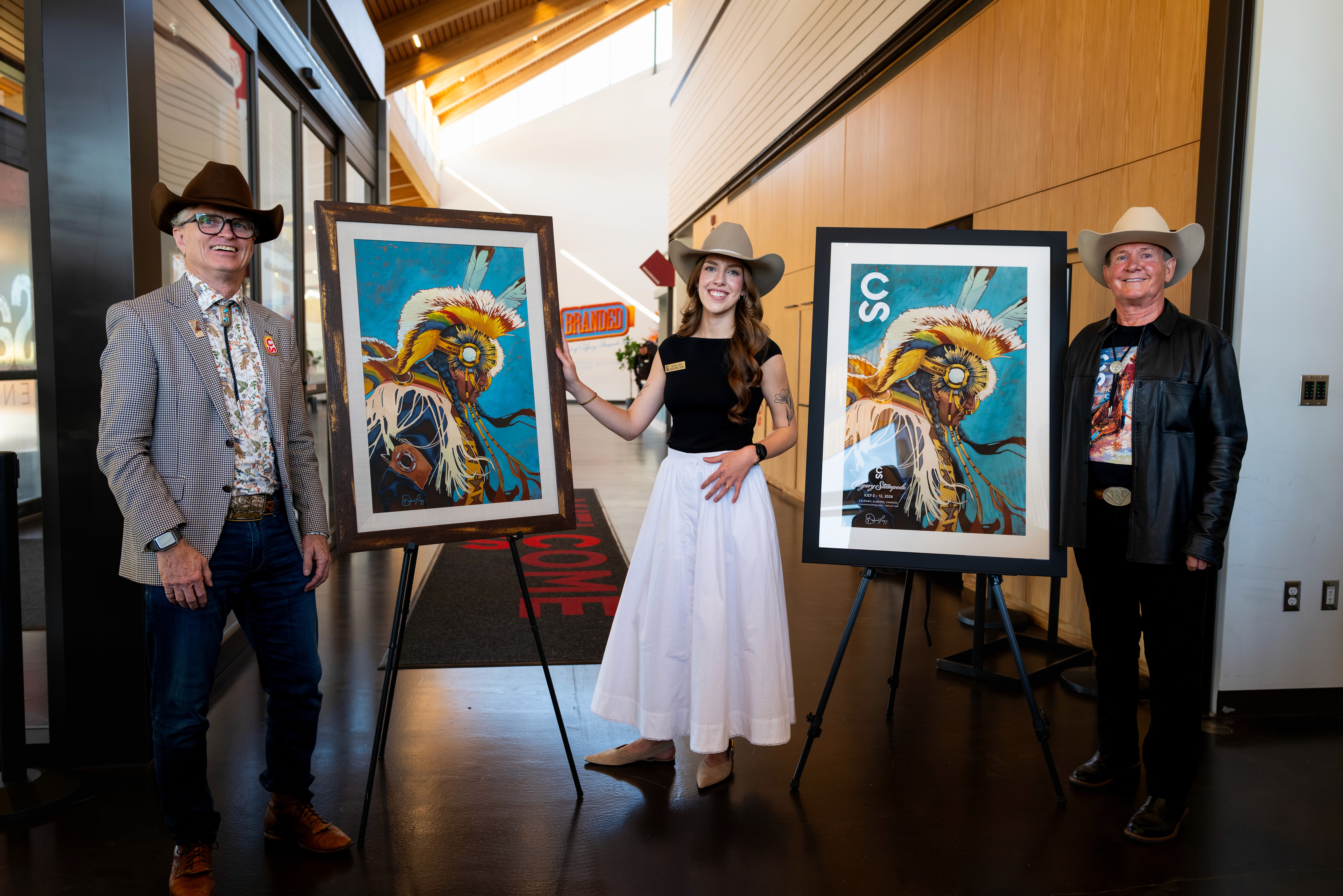 The painting honours both the vibrancy of powwow traditions and the intergenerational connections that continue to connect families and communities to the Stampede.